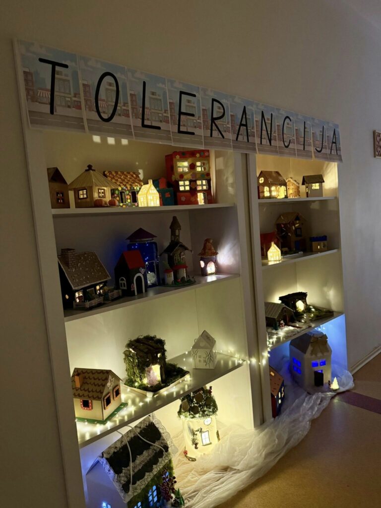 Jaukioje ir kūrybiškoje parodoje „Tolerancijos gatvė“ kiekvienas namelis pasakojo savo istoriją apie draugystę, pagarbą ir supratimą. Grožėjomės tėvelių, pedagogų ir vaikų kūrybiškumu, pasisėmėme šilumos ir kartu prisiminėme, kokia svarbi yra tolerancija mūsų kasdienybėje.